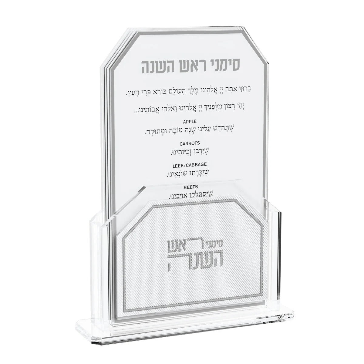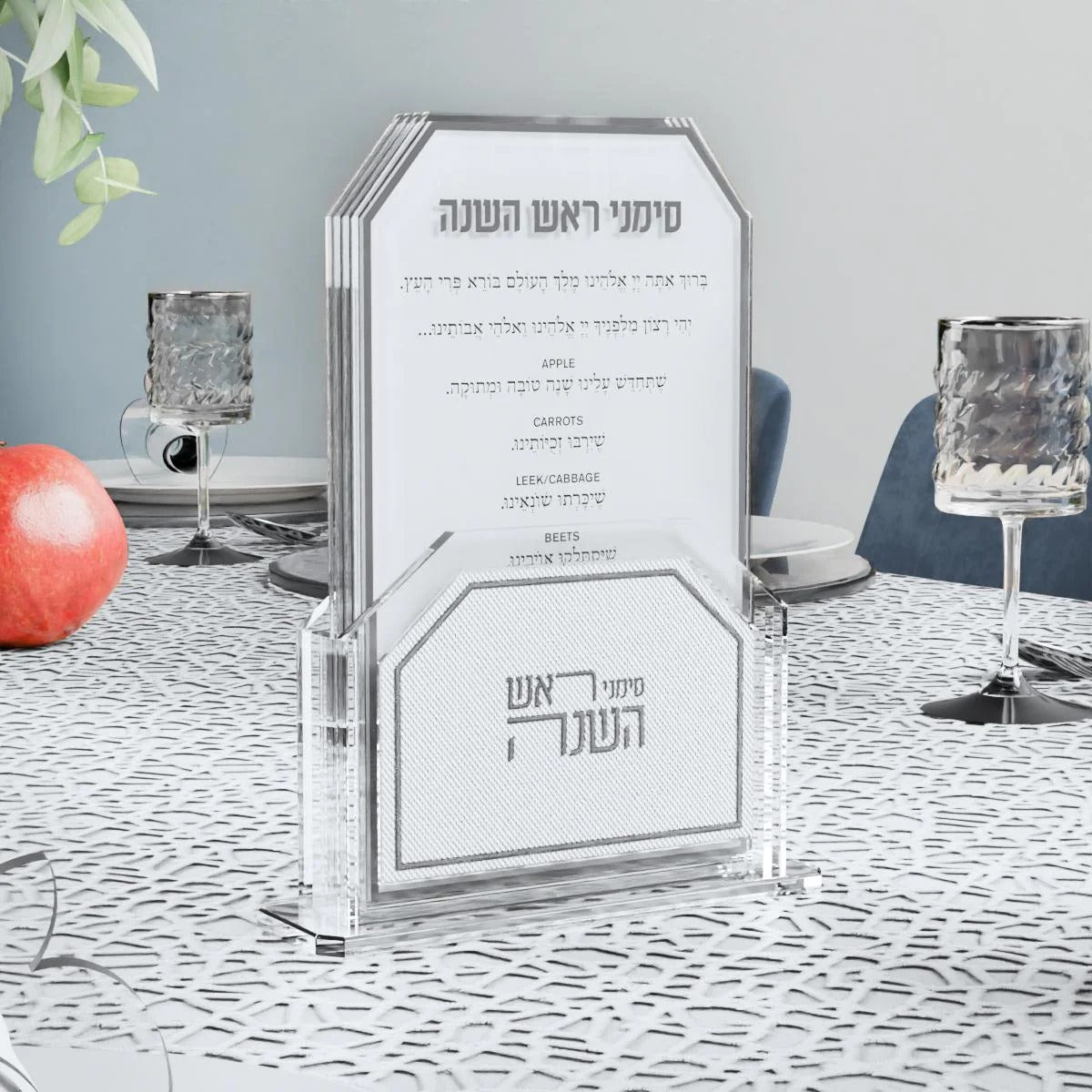 This luxurious Leatherite Simanim Pack is the perfect addition to your Yom Tov table. Elegant and sophisticated, this beautiful simanim set is the ultimate Rosh Hashanah addition. Each simanim card is perfectly designed to make it clear to read. Complete with an embroidered leatherite holder, this set brings a new joy to the reading of the simanim.