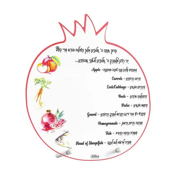 Add artistic flair to your table setting this Rosh Hashona, with this beautiful hand painted semonim card exclusively painted for Feldart.