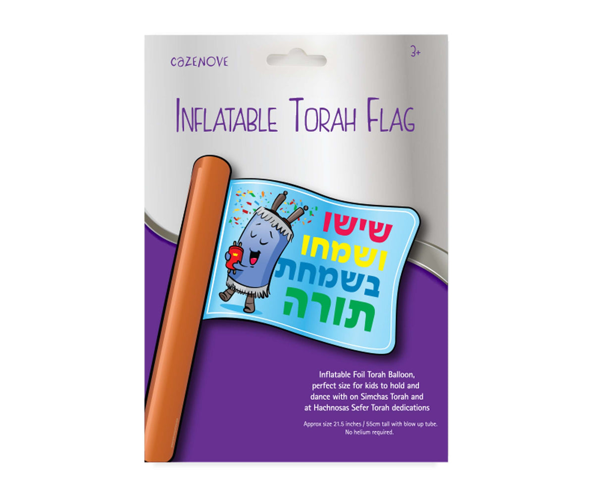 This inflatable foil flag balloon is the perfect size for kids to hold and dance with on Simchas Torah and at Hachnosas Sefer Torah dedications.