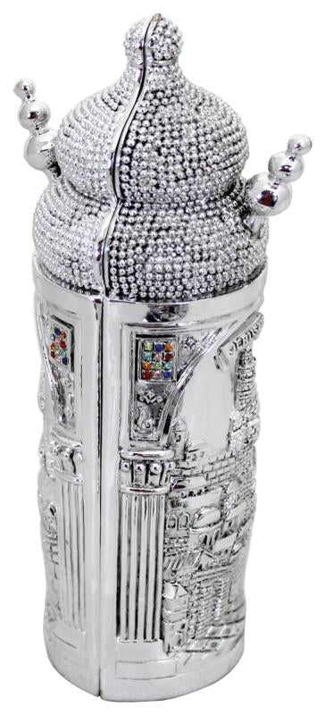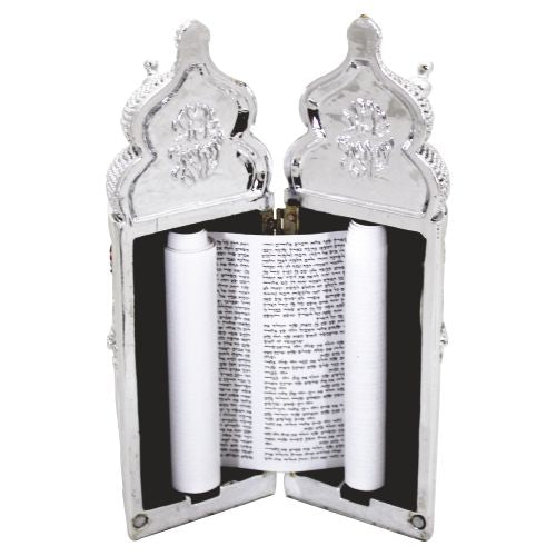 Elegant Silvered Polyresin Sephardic Torah Book For Children, Laid With Choshen Stones 20x10 Cm