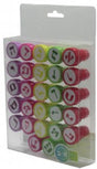 Set includes 27 stamps depicting the letters of the Aleph Beis. Stamps come in assorted colors.