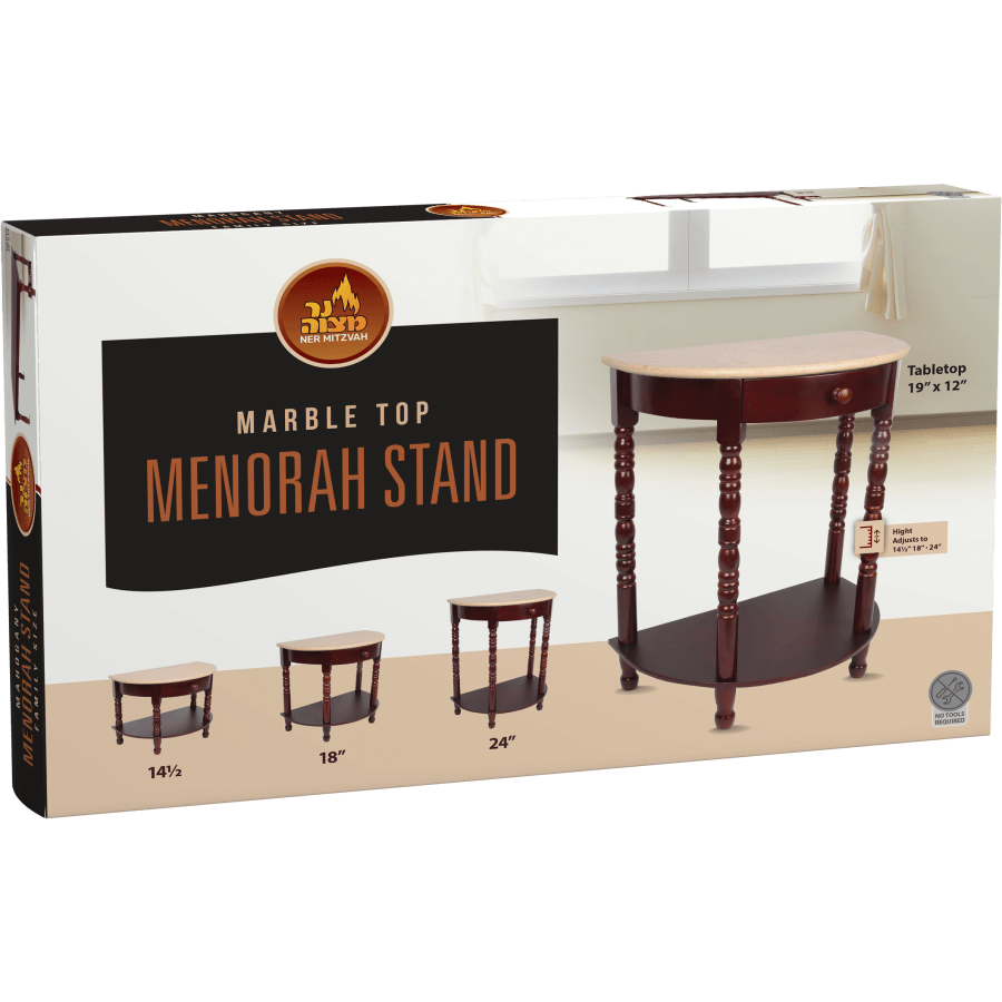 Menorah Stand/Table (Mahogany) With Drawer 2 Heights Legs Sets & Marble Tabletop is backordered and will ship as soon as it is back in stock.