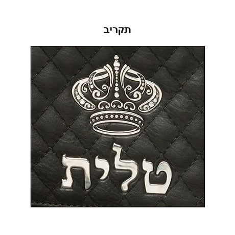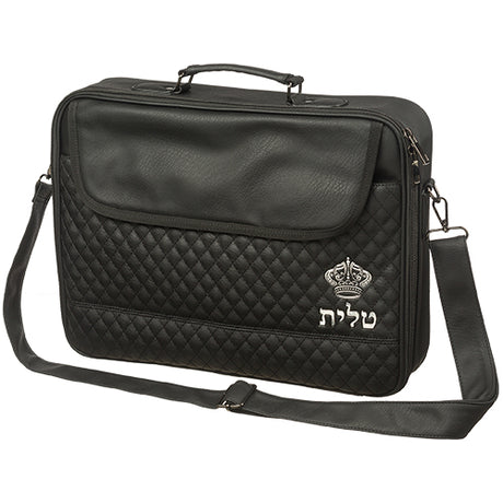PU Fabric Talit 43*36 cm with Handle- Black with Embossed Letters