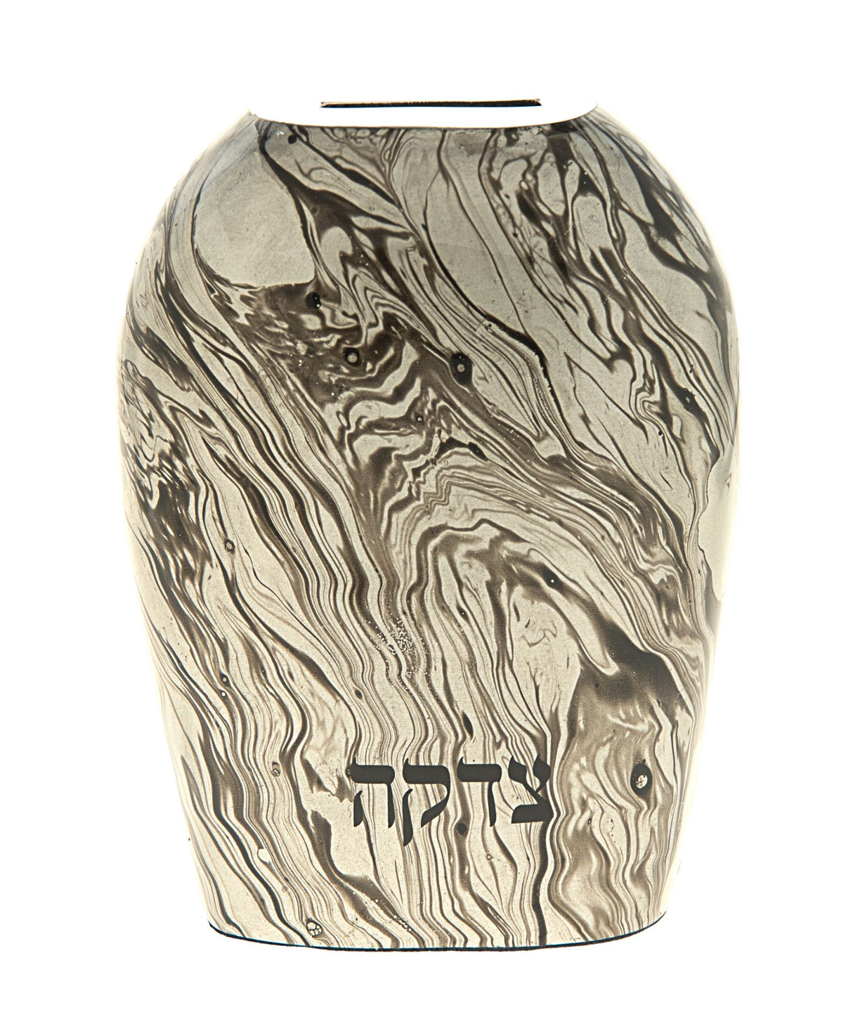 Tzedakah box Silver Abstract with Gold FlaresTzedakah box Silver Abstract with Gold Flares is backordered and will ship as soon as it is back in stock.