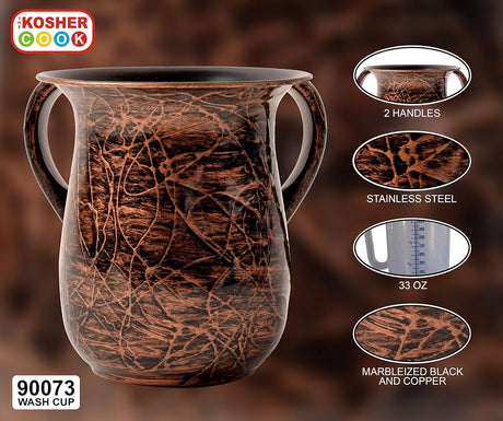 Stainless Steel Washing Cup - Marbleized Black and Copper Netilat Yadayim Cup