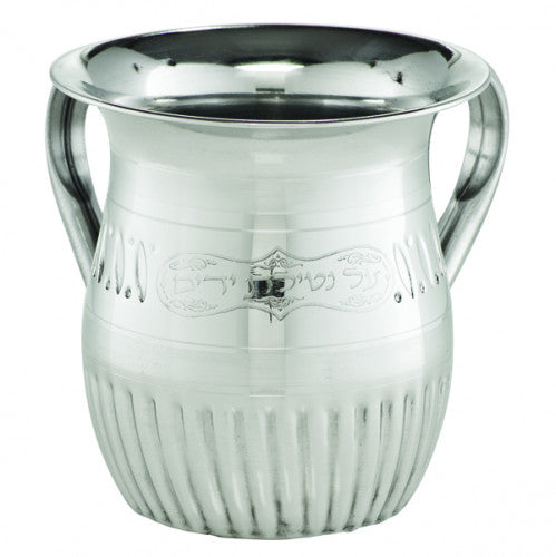 Washing one's hands before bread is one of Judaism's most commonly practiced rituals, and it's a pleasure to grace one's home with beautiful wash cups suited for this use. This tinted green stainless steel wash cup is steel based with secured by 2 curved sturdy handles. Great gift idea!