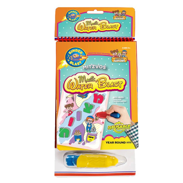 All the just-like-painting fun, none of the mess or cleanup! Magic Water Blast lets you fill in each exciting Shabbos page with bright colors, no paint or markers needed! Use the refillable, kid-friendly water pen to reveal colors with every stroke. Let the pages dry and watch as the colors disappear for another day, so that you can paint with Magic Water Blast again and again.