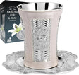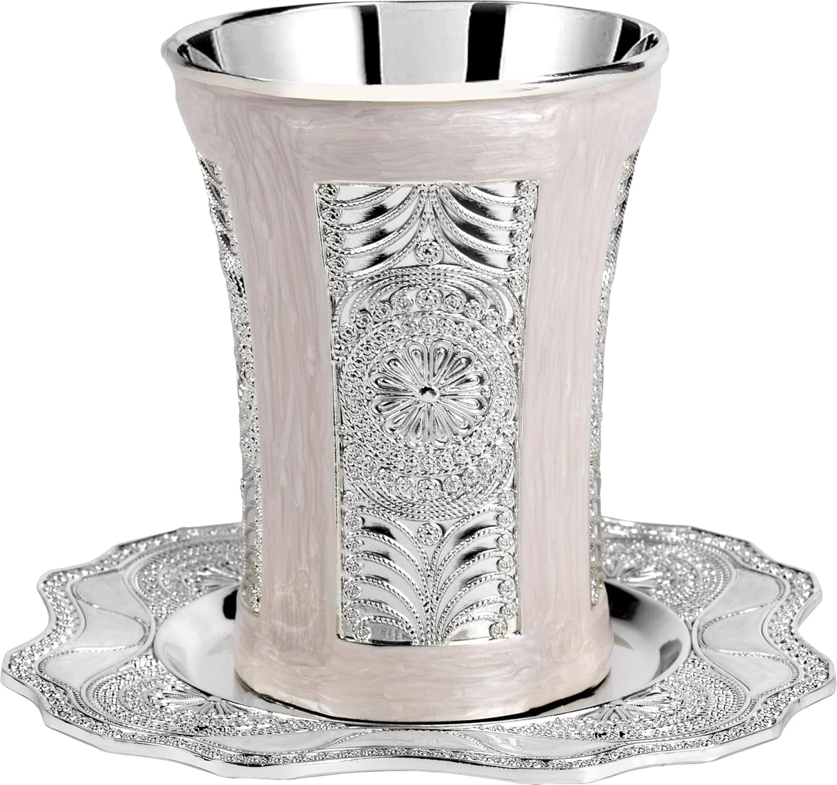 - MATCHING TRAY: This stunning kiddish cup comes with a matching silver plated and marble "saucer" tray. The tray has the same design and a recessed middle for the wine to spill into. Using this kidush cup will leave no mess or wine spills at your table.